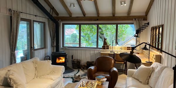Set within an expansive 800 m² private estate, the grounds of the Main River Estate House are nothing short of spectacular. A covered terrace, with a dining table and a cozy reading corner, invites relaxation while overlooking the stunning landscape. The private swimming pool, surrounded by sun loungers, offers the perfect place to bask in the sun or cool off in complete privacy. A dedicated fishing house, complete with a Finnish sauna, promises ultimate indulgence and relaxation in the heart of nature.